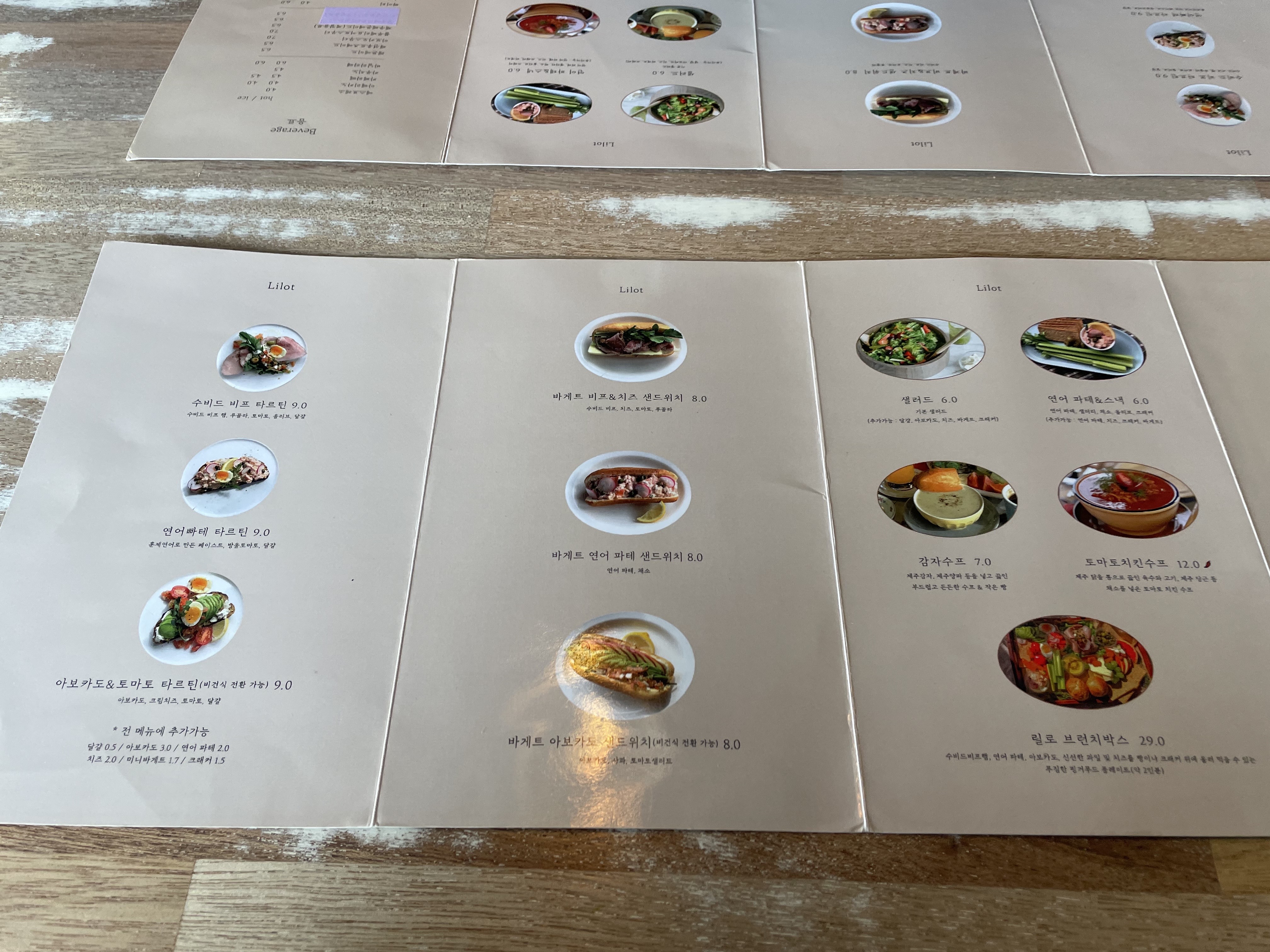 다양한 메뉴가 있는데요, 타르틴, 샌드위치, 수프류로 분류할 수 있어요.