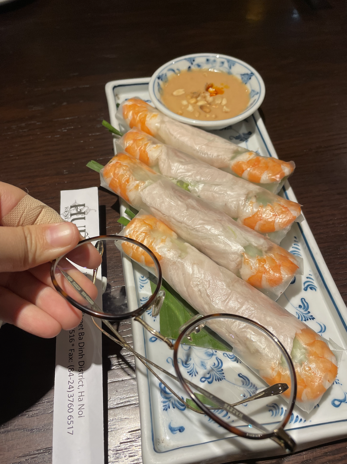 그리고 스프링롤이 먼저 나왔는데요, 정말 제 안경과 비교해도 크기가 어마어마하게 크고 도톰하고 길었어요!