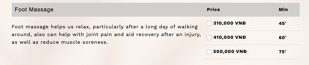 저는 발마사지 45분을 받았구요! 가격표는 홈페이지에서도 다시 한 번 확인하실 수 있어요!