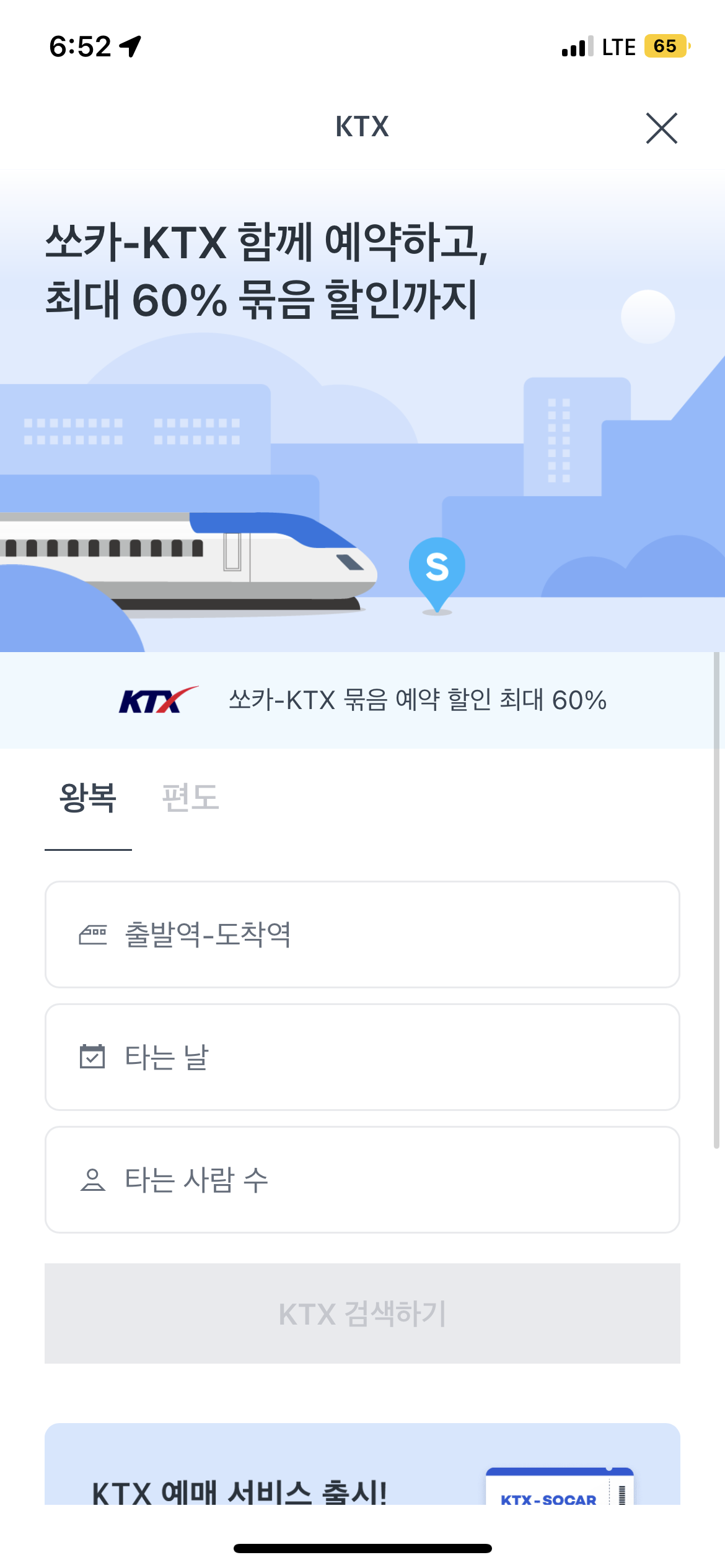 저희는 "서울역"에서 출발해 "신경주역"으로 가는 KTX를 이용했는데요, 오랜만에 쏘카 앱을 켜보니 KTX 표 구매와 쏘카 예약을 같이 할 수 있는 기능이 생겨서 쏘카앱에서 KTX와 "신경주역" 근처 주차장에서 쏘카 렌트 예약도 한 번에 진행했어요. 몇 달 전엔 못봤던 거 같아서, 최근에 업데이트 된 것 같은데, 진짜 유용한 기능인 것 같아요!