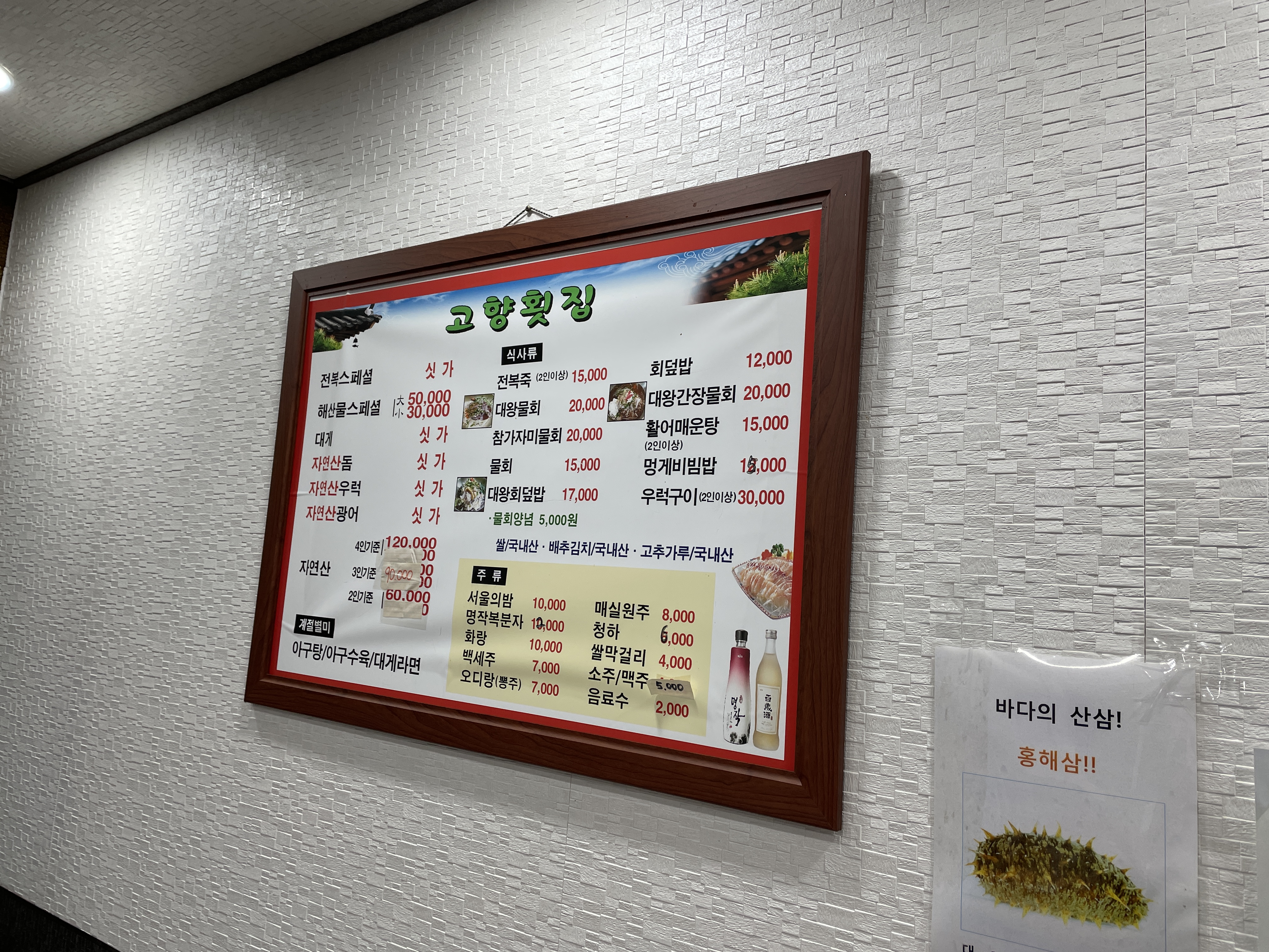 저희는 숙소에 주차해두고 숙소와 제일 가까운 횟집, 고향횟집에 걸어서 다녀왔습니다.