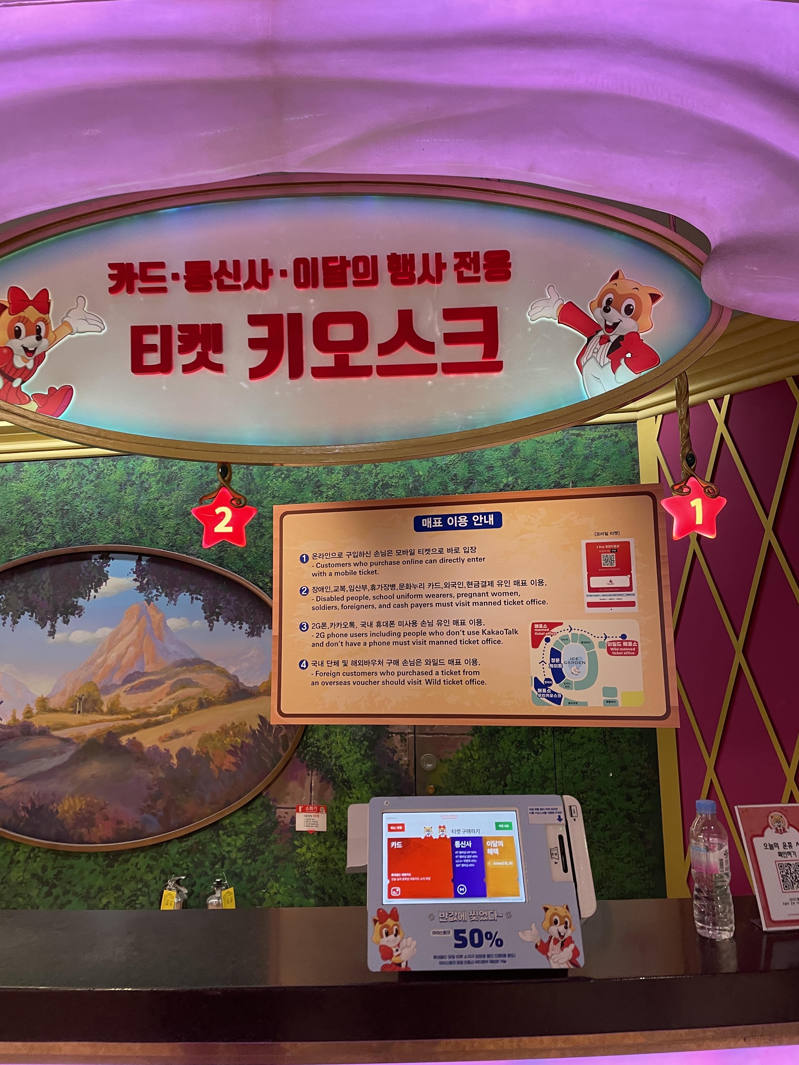 롯데월드 입구 앞에 키오스크가 있으니, 키오스크에서 구매하시면 됩니다!