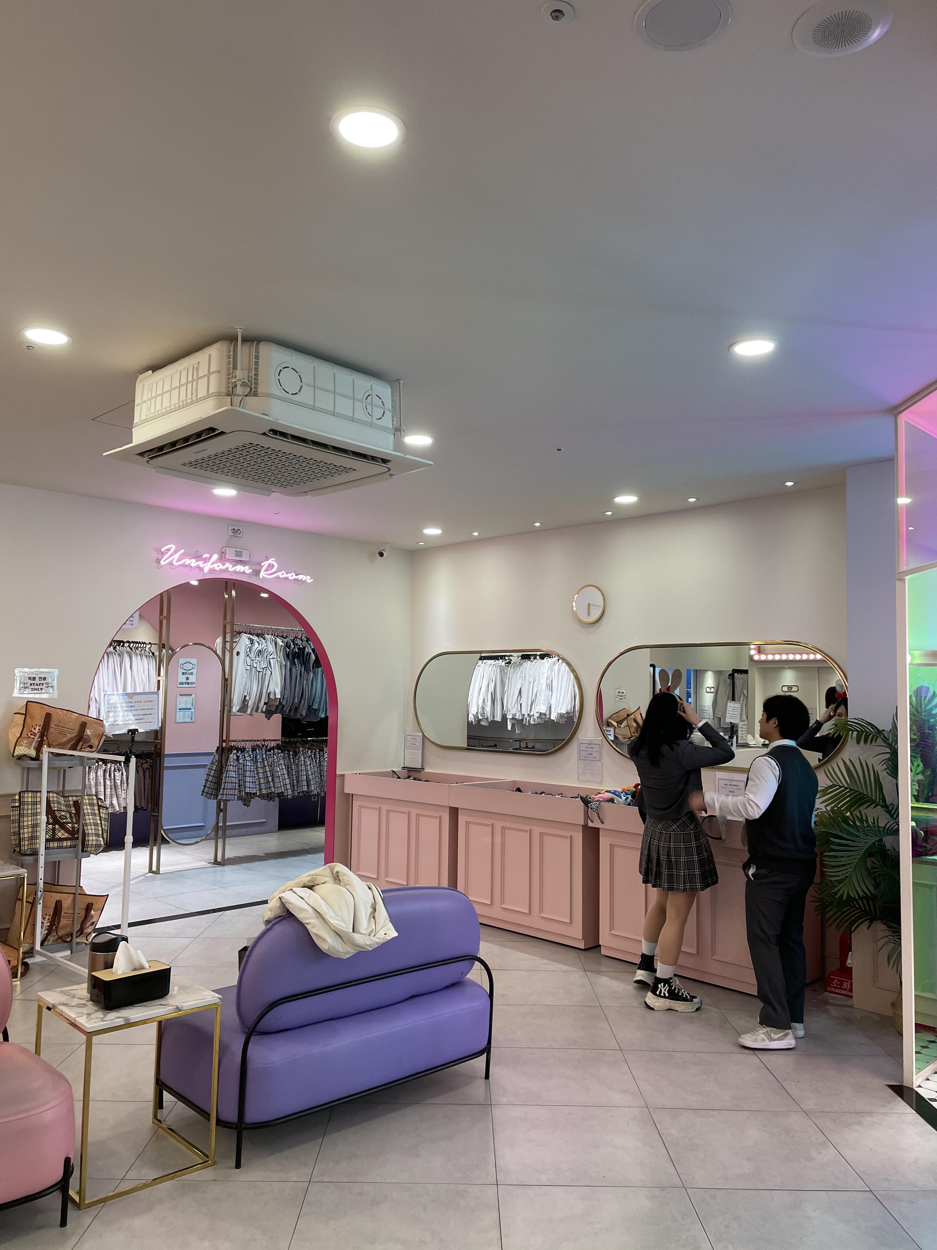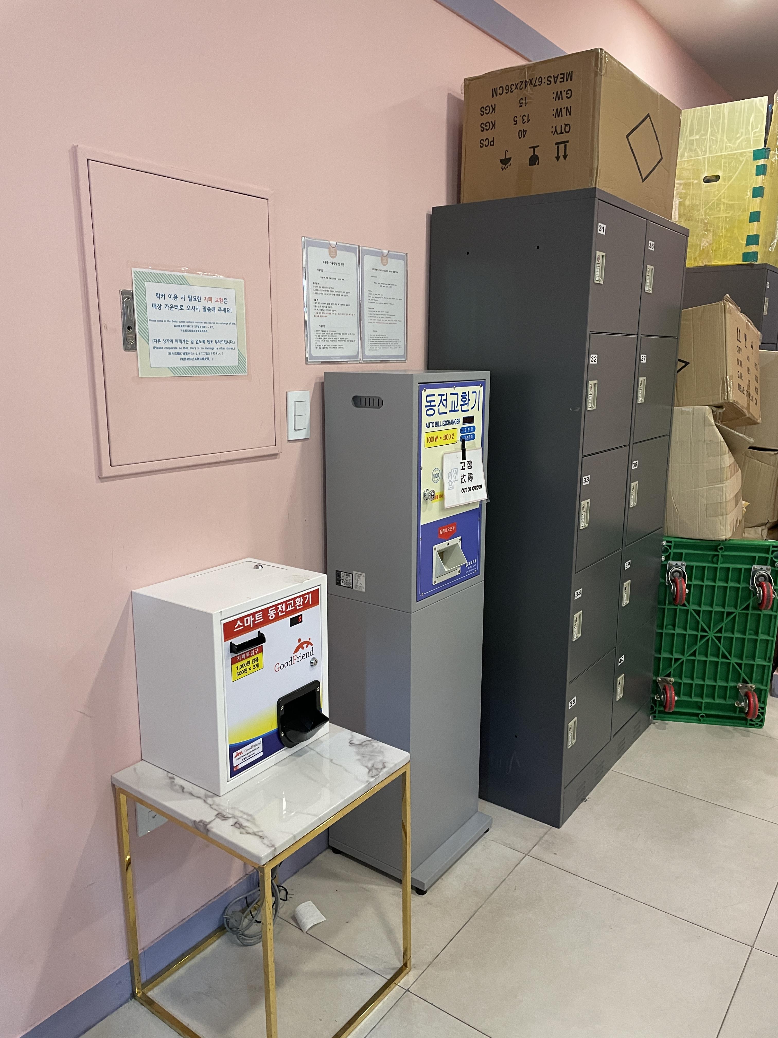 해당 건물에는 교복대여점이 몇 군데 있었는데요 모두 1) 교복대여점 가게 2) 짐 보관함 을 각각 운영하고 있었어요.