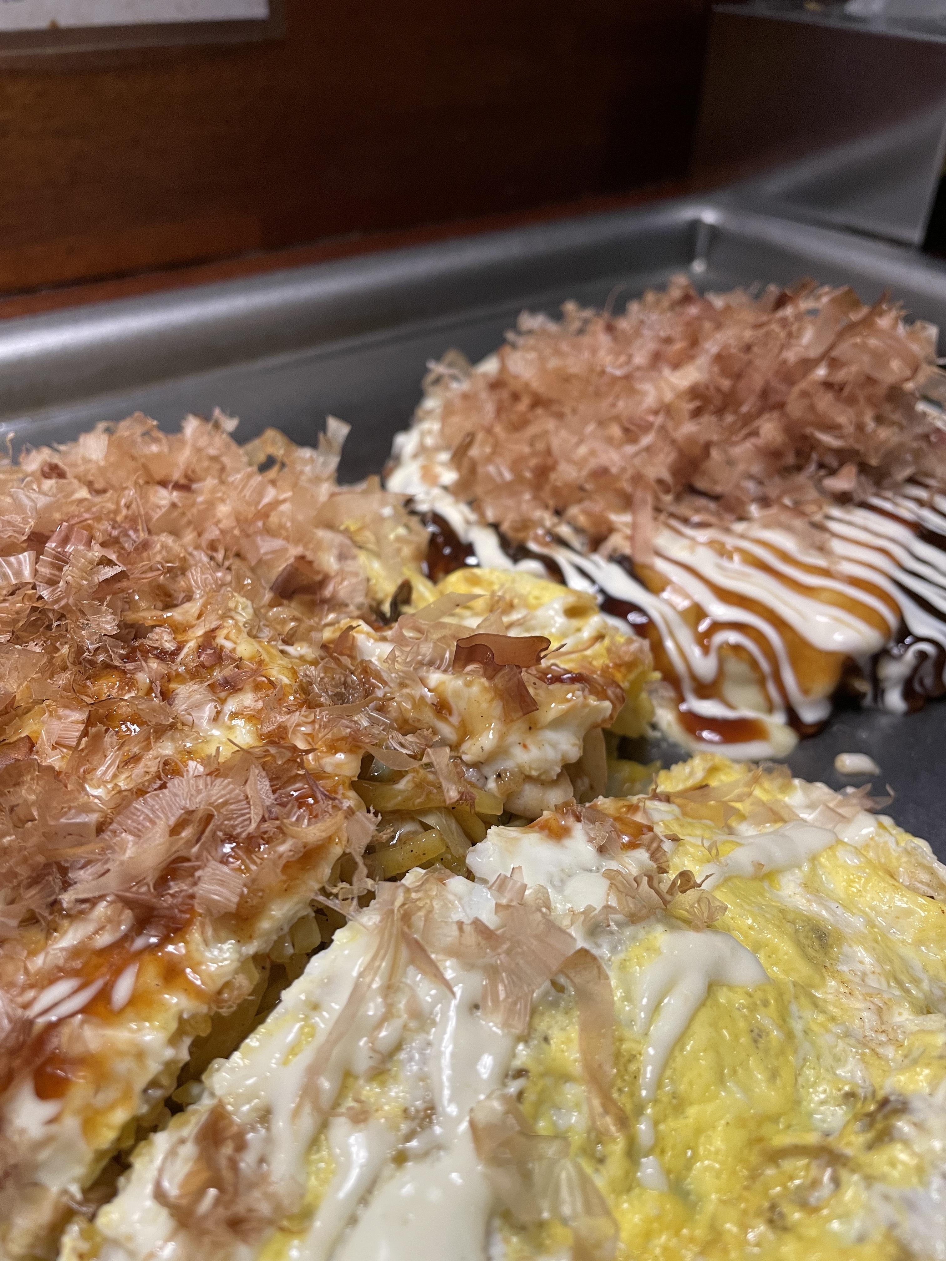저는 우선 모단야끼는 제외했어요. 오꼬노미야끼와 야끼소바가 섞인 맛을 원하지 않았고, 각각 별개의 맛으로 즐기고 싶었기 때문이에요.