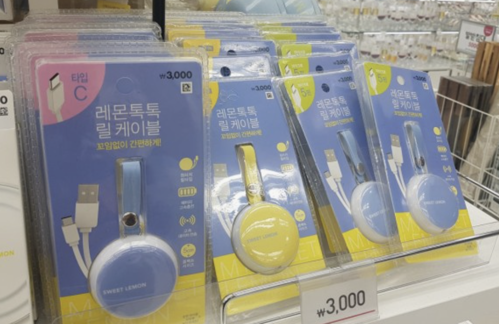 충전기야 말로 필수중에 필수에요! 저는 릴 케이블이 하나인데, 종종 다른 가방에 두고가서 다이소에 가서 하나 더 사려고 하면, C 타입은 품절인 경우가 꽤 많더라고요! 다이소 인기템이니 출장 전에 미리 꼭 쟁여두세요!