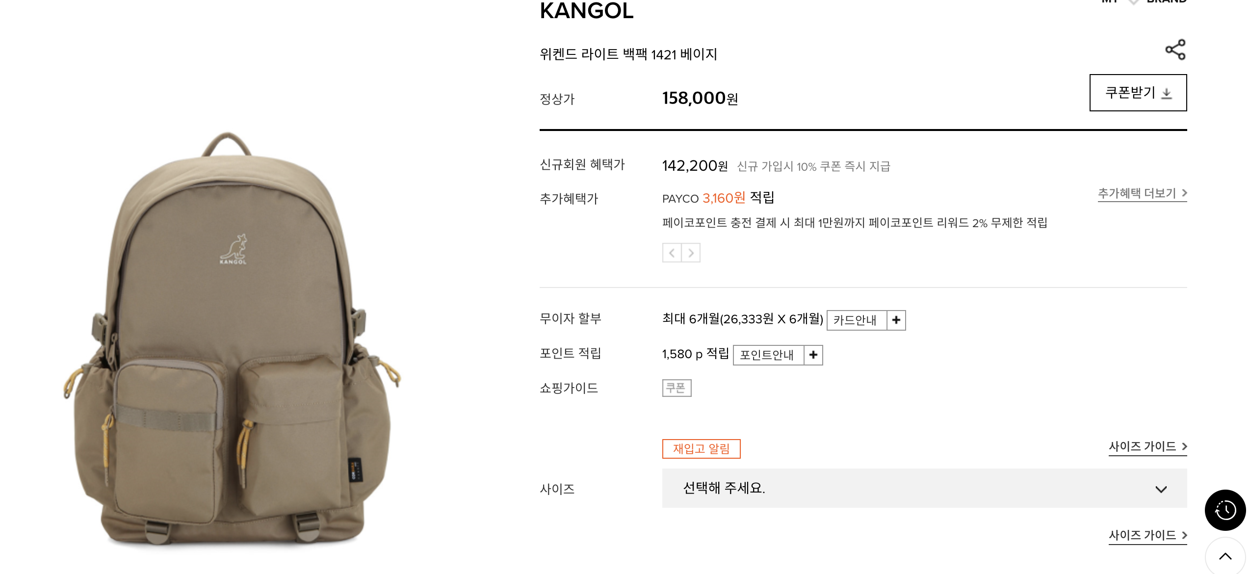 [KANGOL 캉골] 위켄드 라이트 백팩 1421 베이지