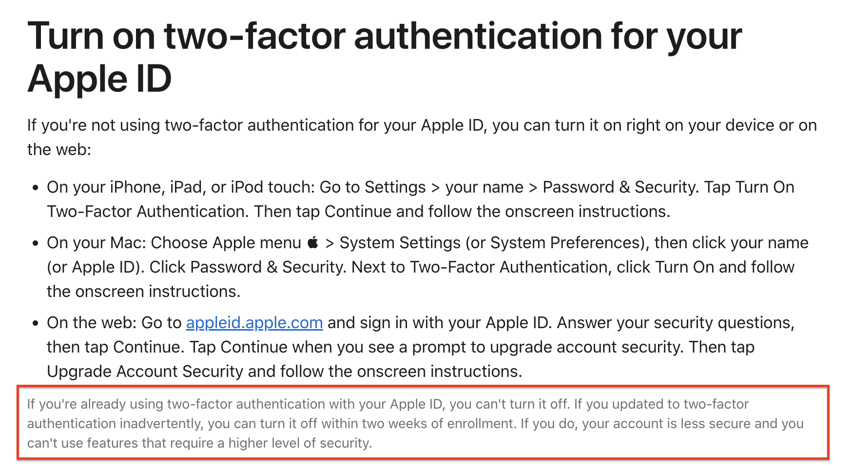 1. 해지를 못한다: 이미 당신의 애플 ID가 2단계 인증을 사용하고 있다면, 해당 기능을 끌 수 없습니다.