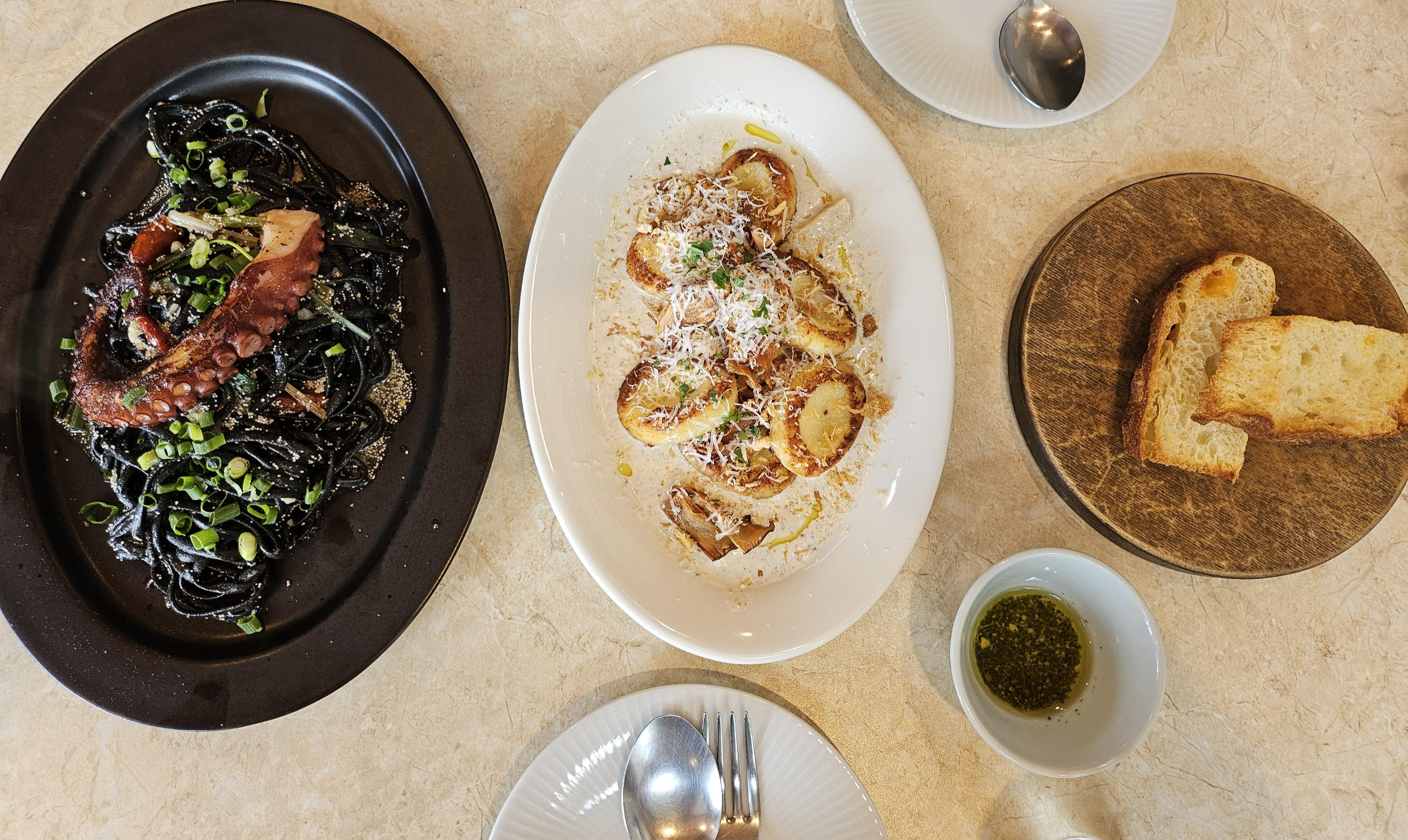 저희는 제주 돌문어 먹물 명란 파스타와 트러플 크림 뇨끼를 주문했어요.