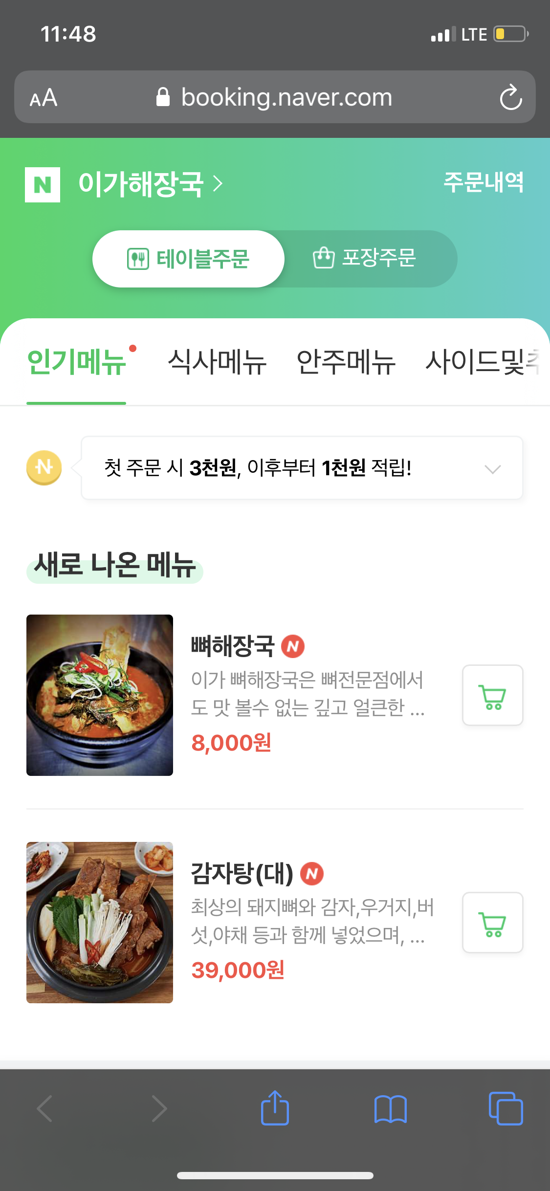 네이버의 테이블주문
