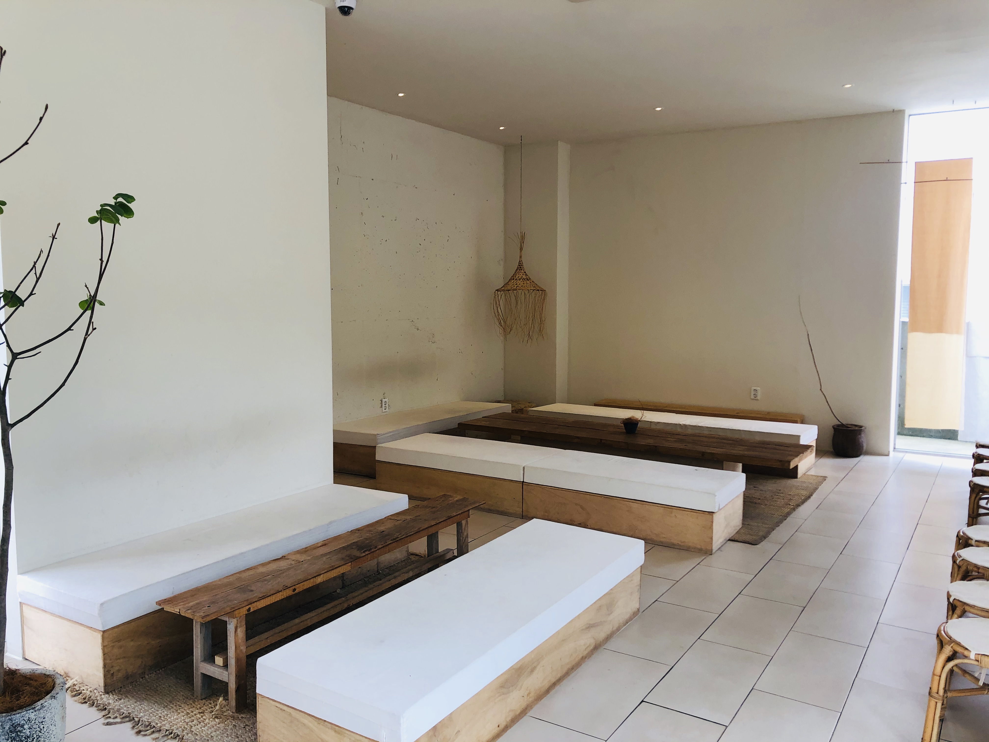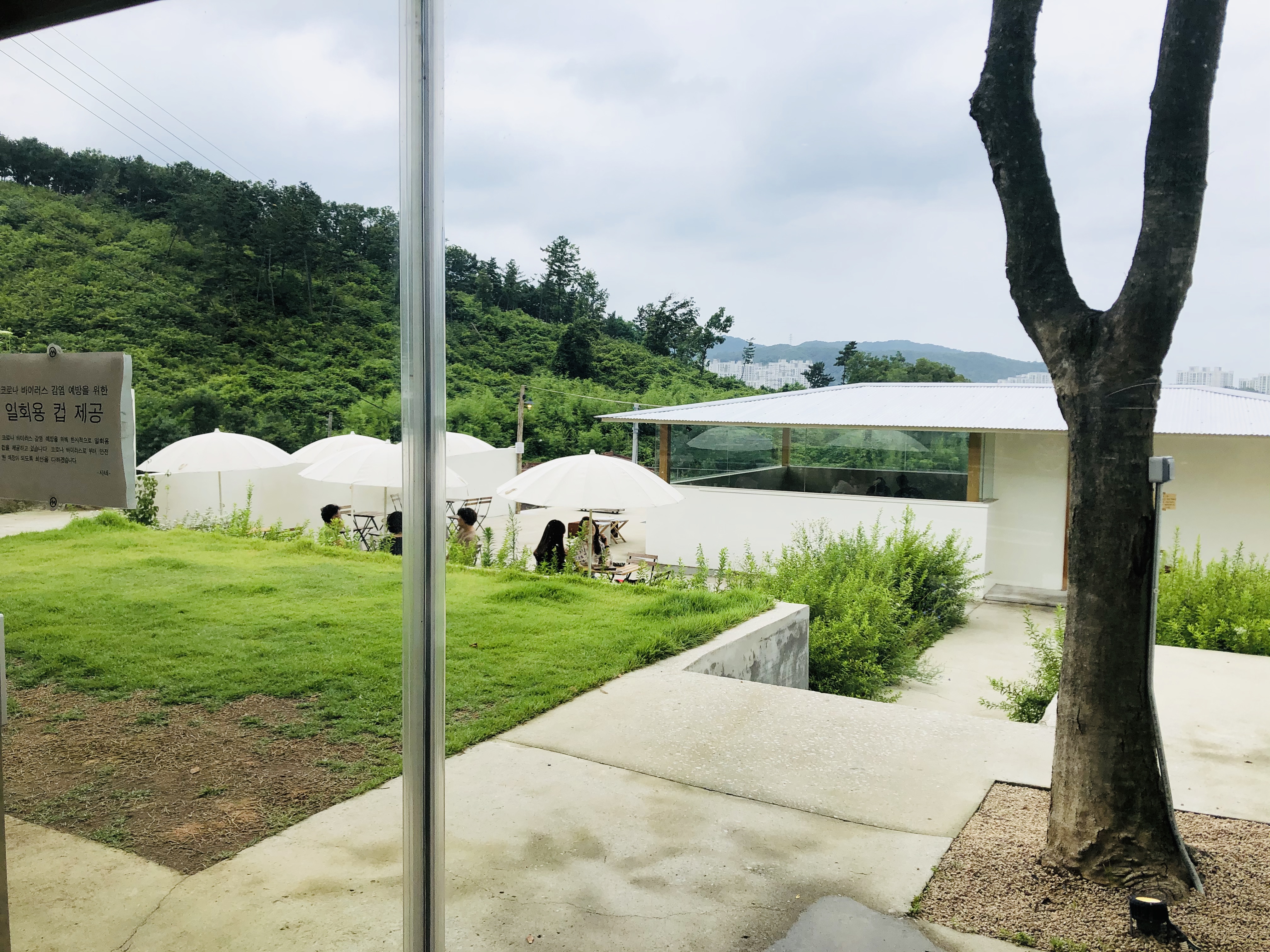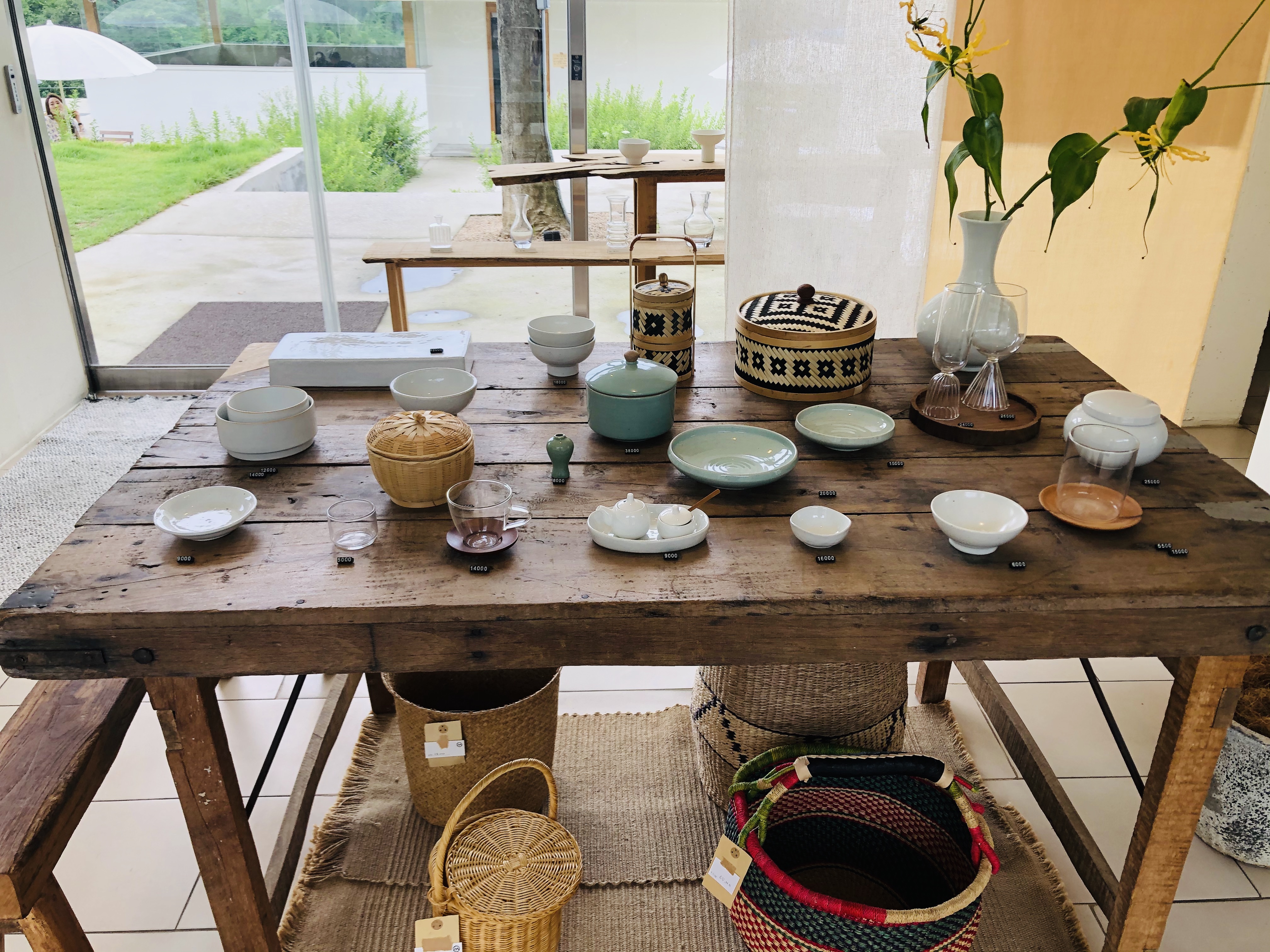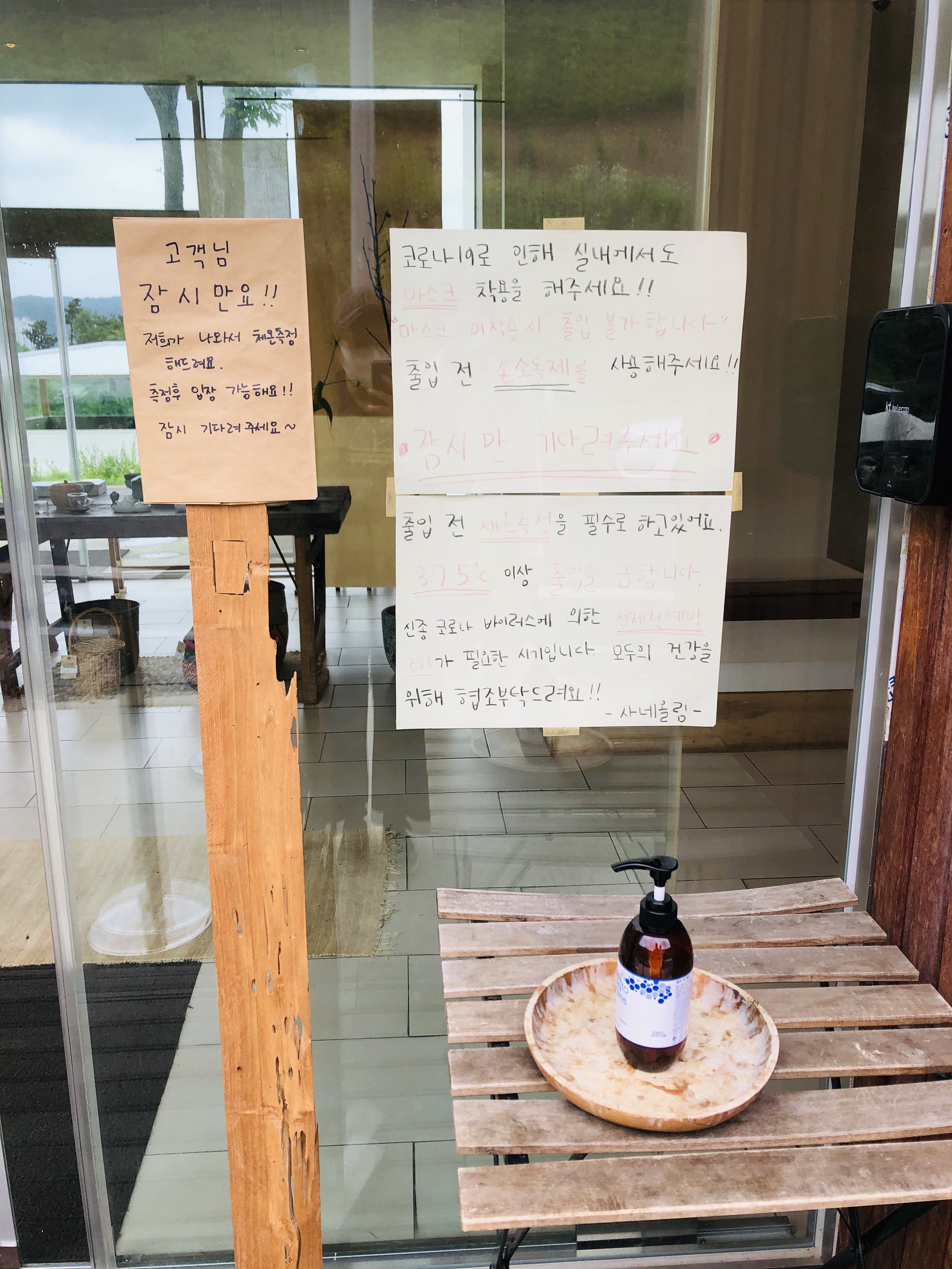 코로나 19 때문에 입구에서 체온을 재고 있어요. 그래서 더 마음이 놓이더라고요. 손을 소독하고 체온을 재면 카페에 들어갈 수 있어요. 실내 공간에는 라탄 제품이랑 도자기 제품들이 있어서 분위기가 좋았어요.