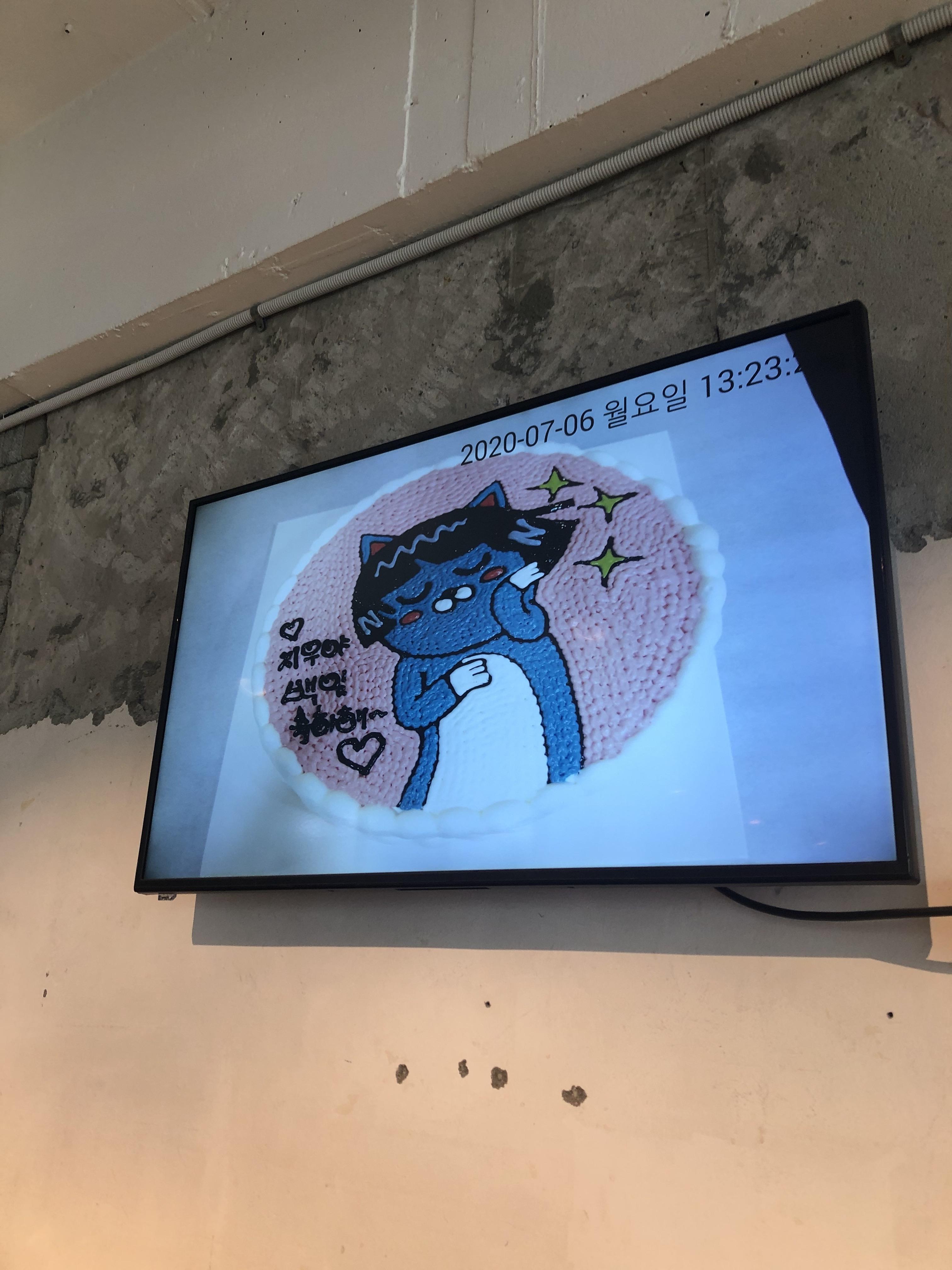 베이커리 내에 커다란 모니터가 두 개 있어서 바게트를 잘라주시는 동안 멍하니 봤는데, 그림 그린 케이크도 파시는 것 같더라구요. 제가 어렸을 때 이런 케이크 받았으면 정말 좋았겠다 싶었어요. 요즘 아가들이 부럽네요! 저는 스티치를 좋아하는데 어른이어도 누가 스티치 케이크 만들어주면 좋겠어요! 나중에 부모님 생신 때 돈을 그려드릴까 하고 가격을 여쭤봤는데, 베이커리에서 파는 가장 큰 케이크 사이즈인 3호 사이즈부터 만들 수 있고 58,000원부터 시작이라고 해요! 혹시 케이크 제작에 관심 있으신 분들은 참고해주세요!