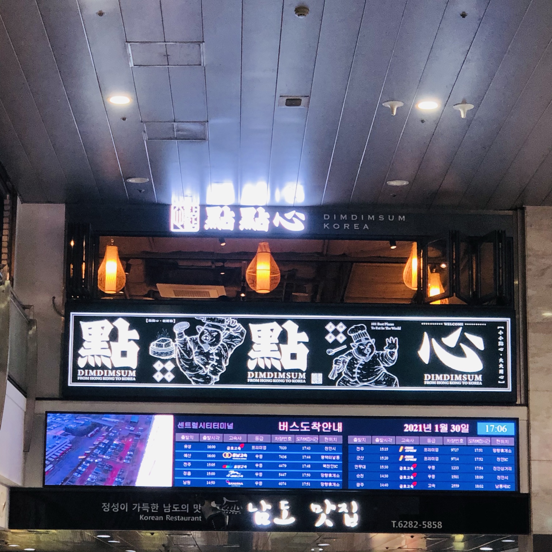 딤딤섬은 2021년 1월 기준, 명동/코엑스 파르나스몰/고속터미널 파미에스테이션 서울에는 3개 지점이 있어요. 친구는 명동에 있는 지점을 방문했었는데, 코로나 때문에 그쪽은 바 형식이라, 식당 형식으로 된 고터 지점을 가게 되었어요. 친구는 명동지점에서는 좀 실망했었는데, 고터 파미에스테이션쪽이 더 맛있다고 하더라구요!