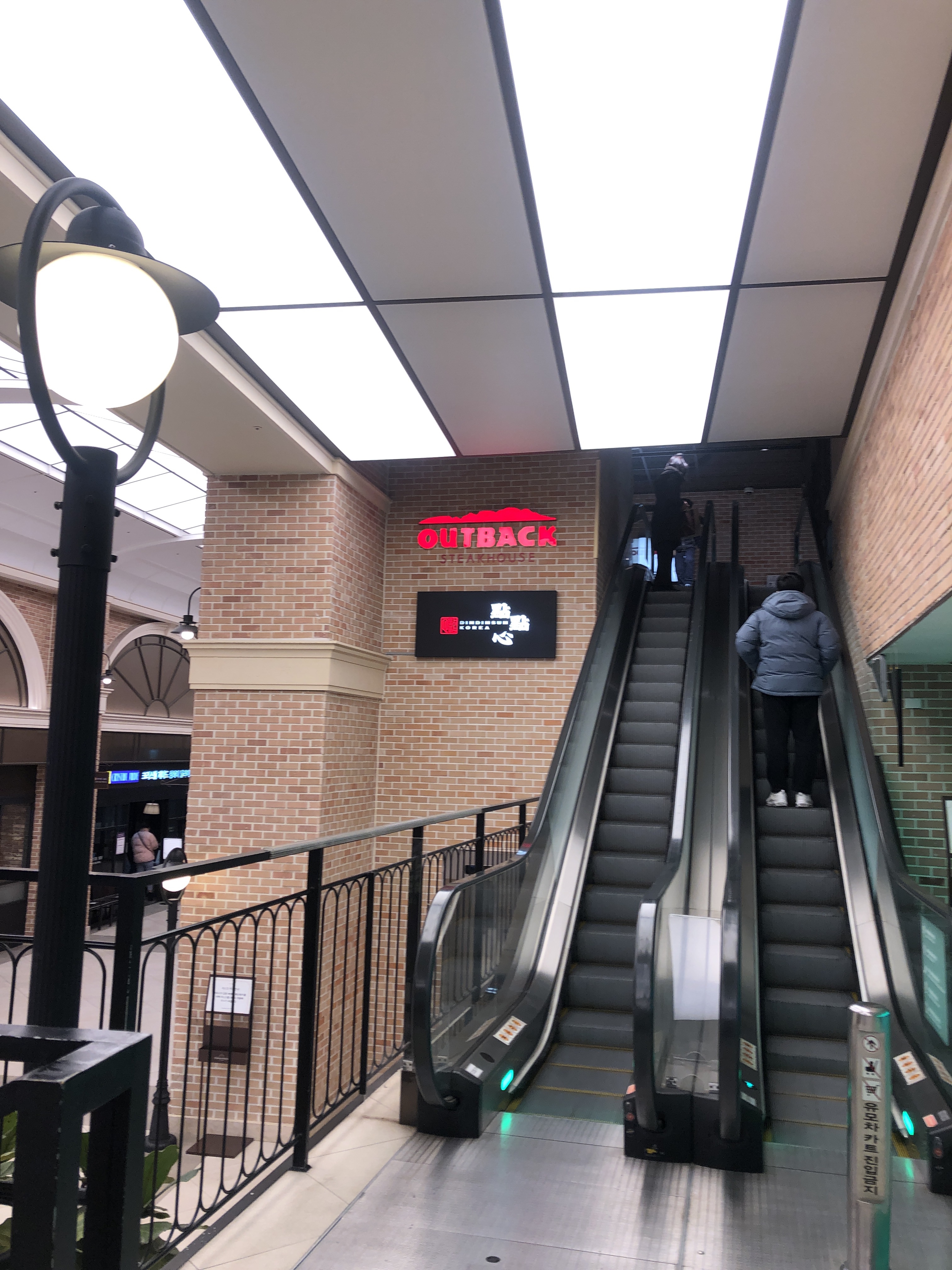 아웃백 표지판을 따라 쭉 가시다 보면, 2층에 딤딤섬 간판과 함께 안쪽 유리문을 통해 아웃백/딤딤섬으로 올라가는 에스컬레이터가 보여요. 여길 따라 쭉 올라가시면 딤딤섬을 찾을 수 있습니다.