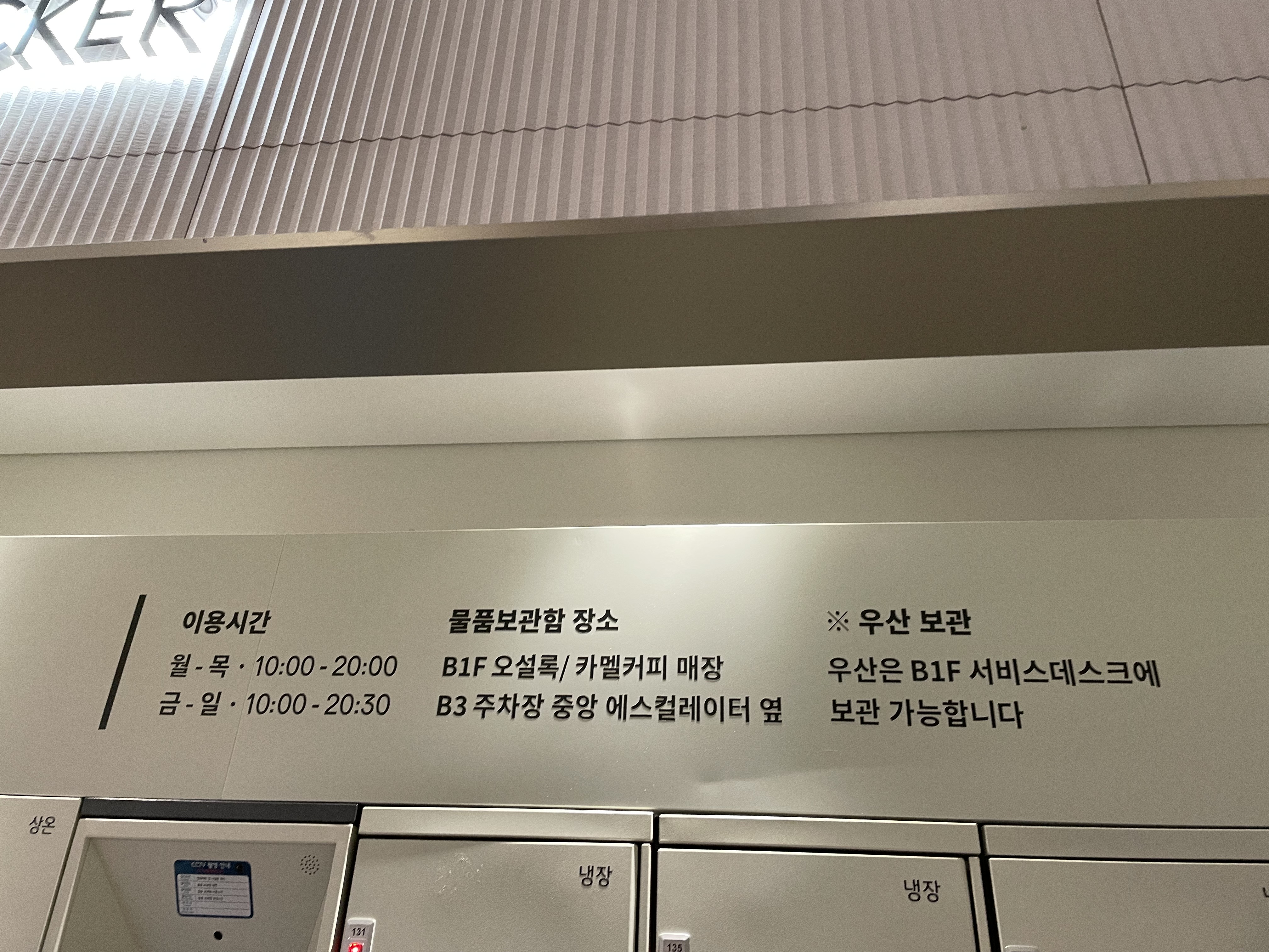 아래 안내 표지판을 보니 B3 주차장 중앙 에스컬레이터 옆에도 사물함이 있기는 한가봐요!