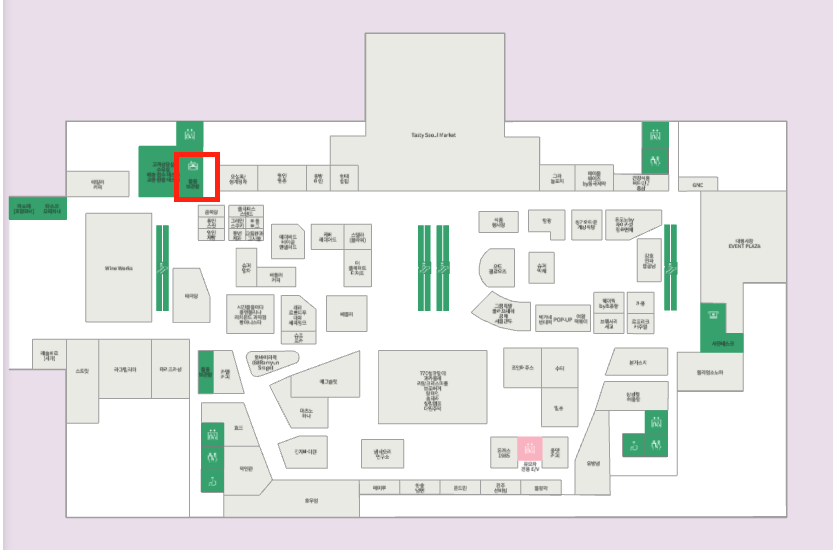 더 현대 홈페이지에서 확인하시면 층별 지도를 확인하실 수 있는데요, 지하 1층 푸드코트 있는 층 오설록 매장 앞쪽에 물품 보관함이 있어요!